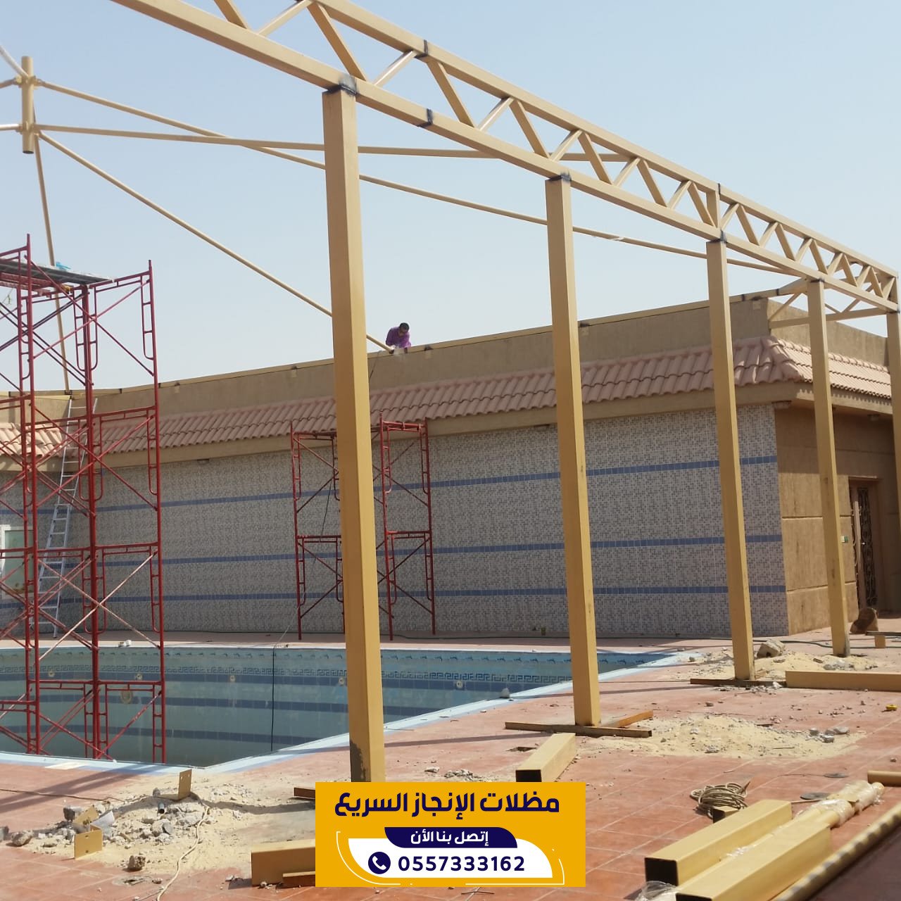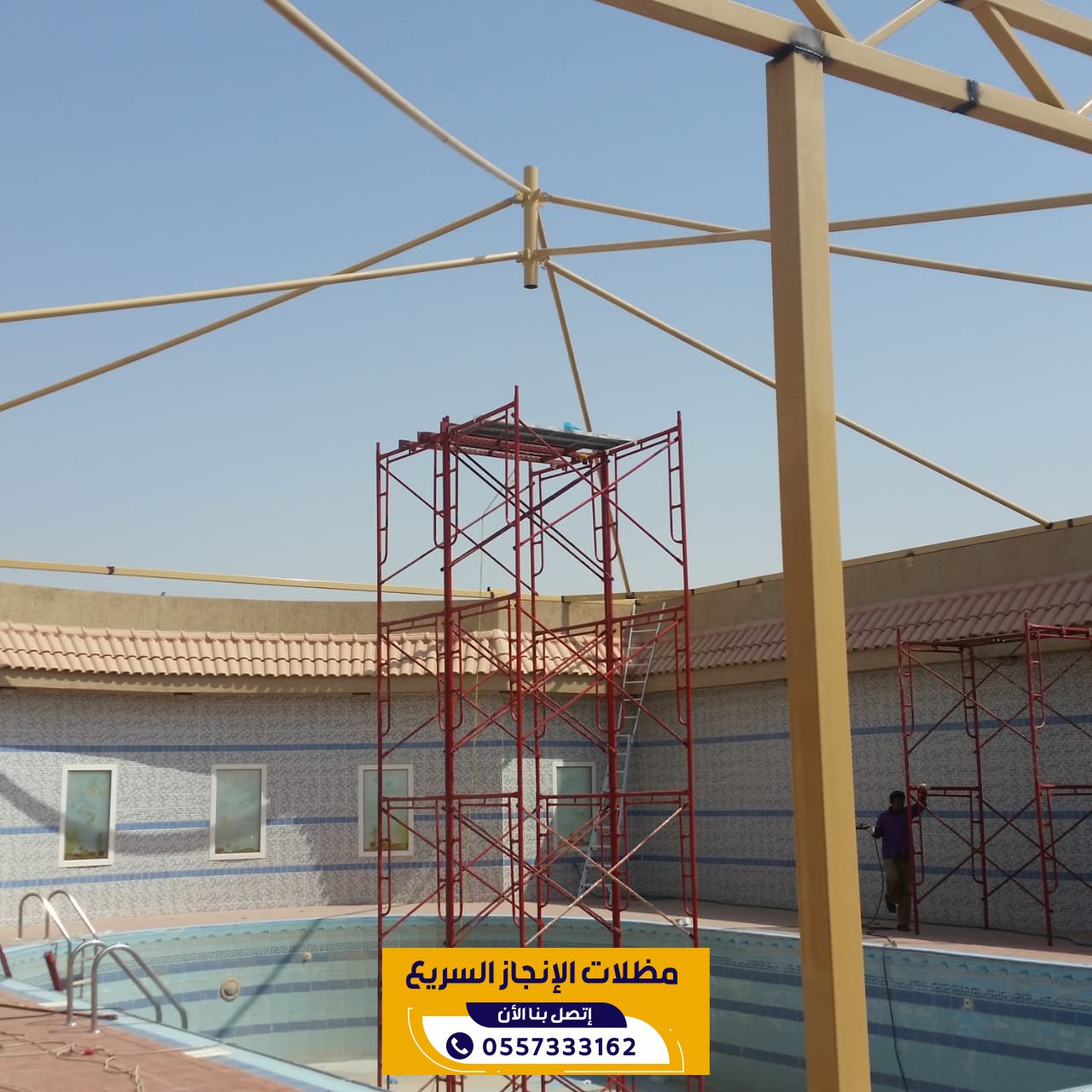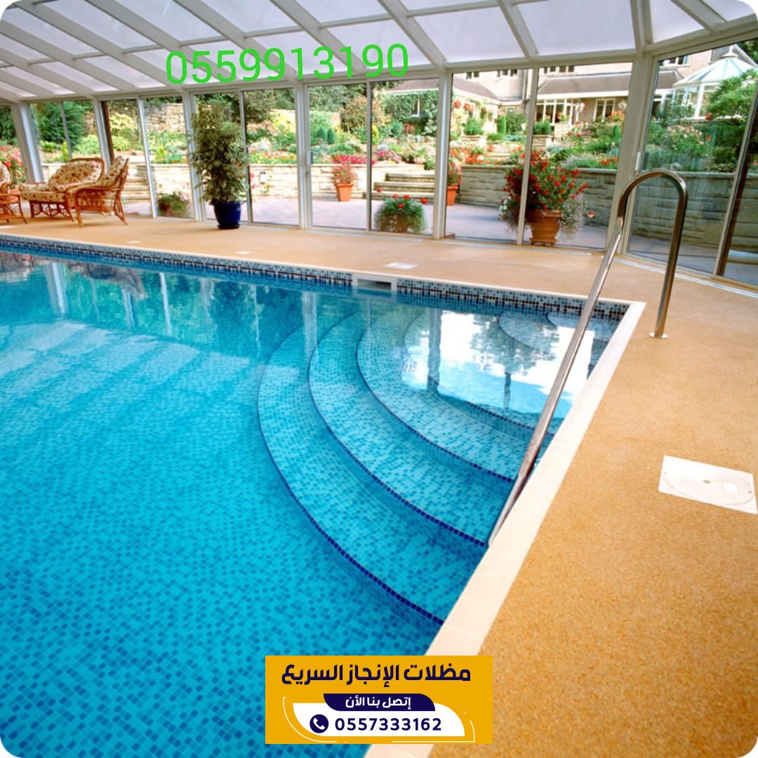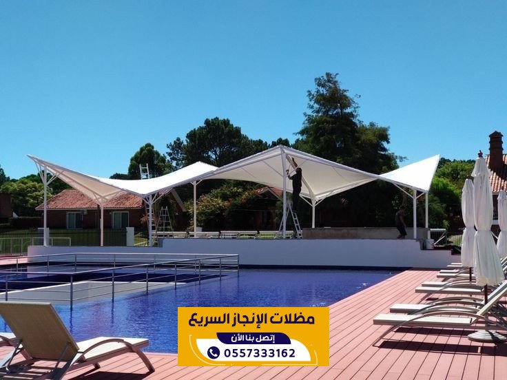مظلات مسابح من مؤسسة الانجاز السريع في الرياض توفر حماية مثالية للمسابح من اشعة الشمس والعوامل الجوية مع الحفاظ على الخصوصية والمظهر الجمالي حيث ننفذ مظلات مسابح بتصاميم عصرية ومواد عالية الجودة تتحمل الحرارة والرطوبة مع تركيب احترافي وسرعة في الانجاز لتناسب جميع المساحات والاستخدامات.
